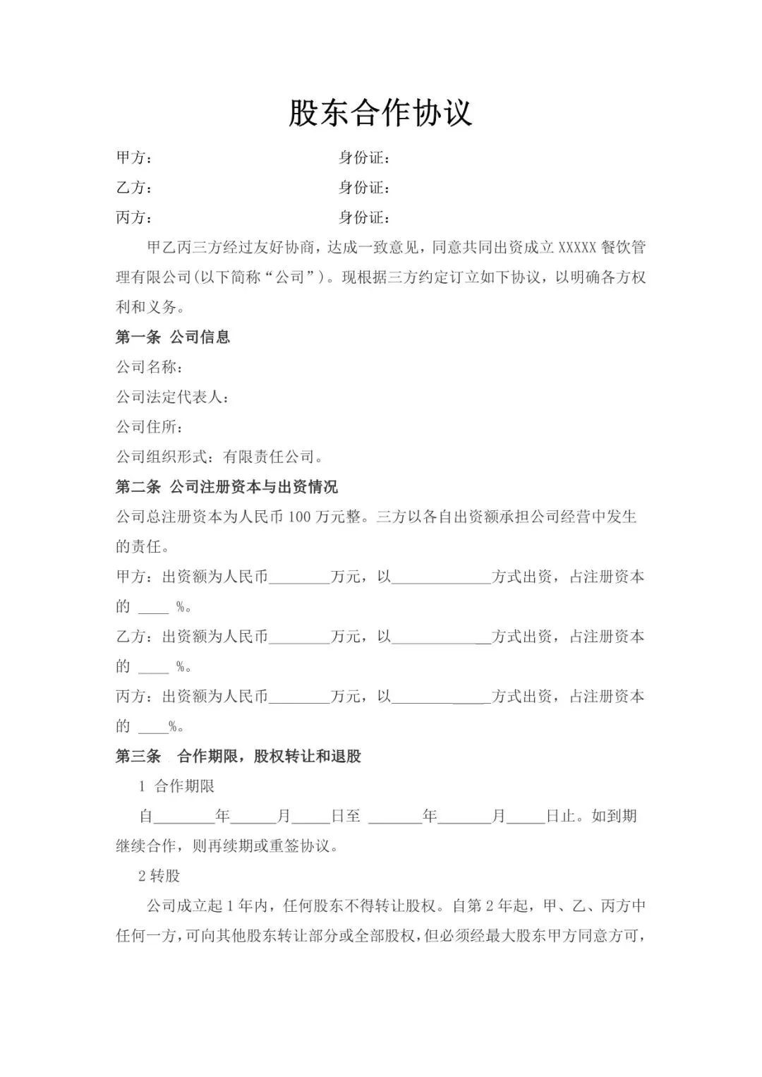 回复关键词“股东合作协议书”领取!