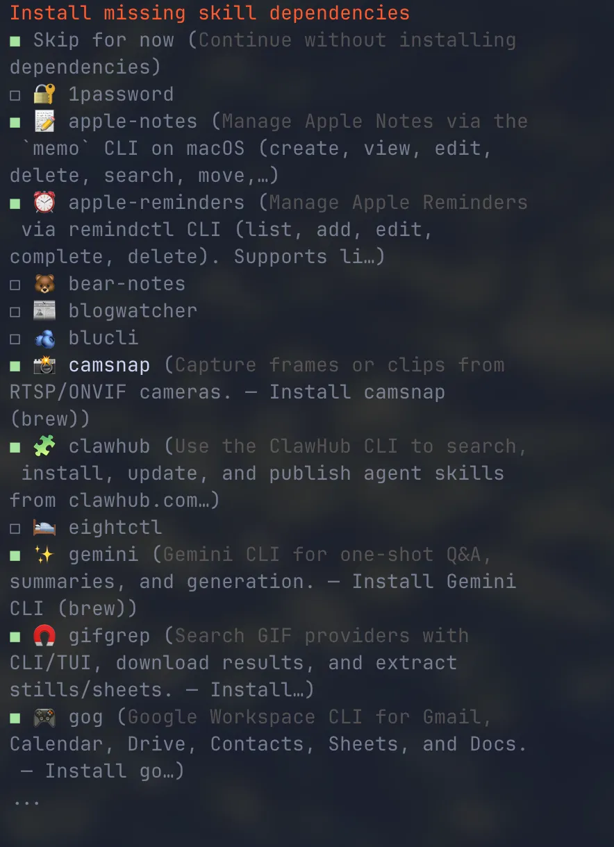 gog:强烈建议开。 Google Workspace 全家桶集成,包括 Gmail、Calendar、Tasks、Drive。用 Google 邮箱的人直接选这个,功能最完整,而且可以随时从 Google 账户撤销访问权限。