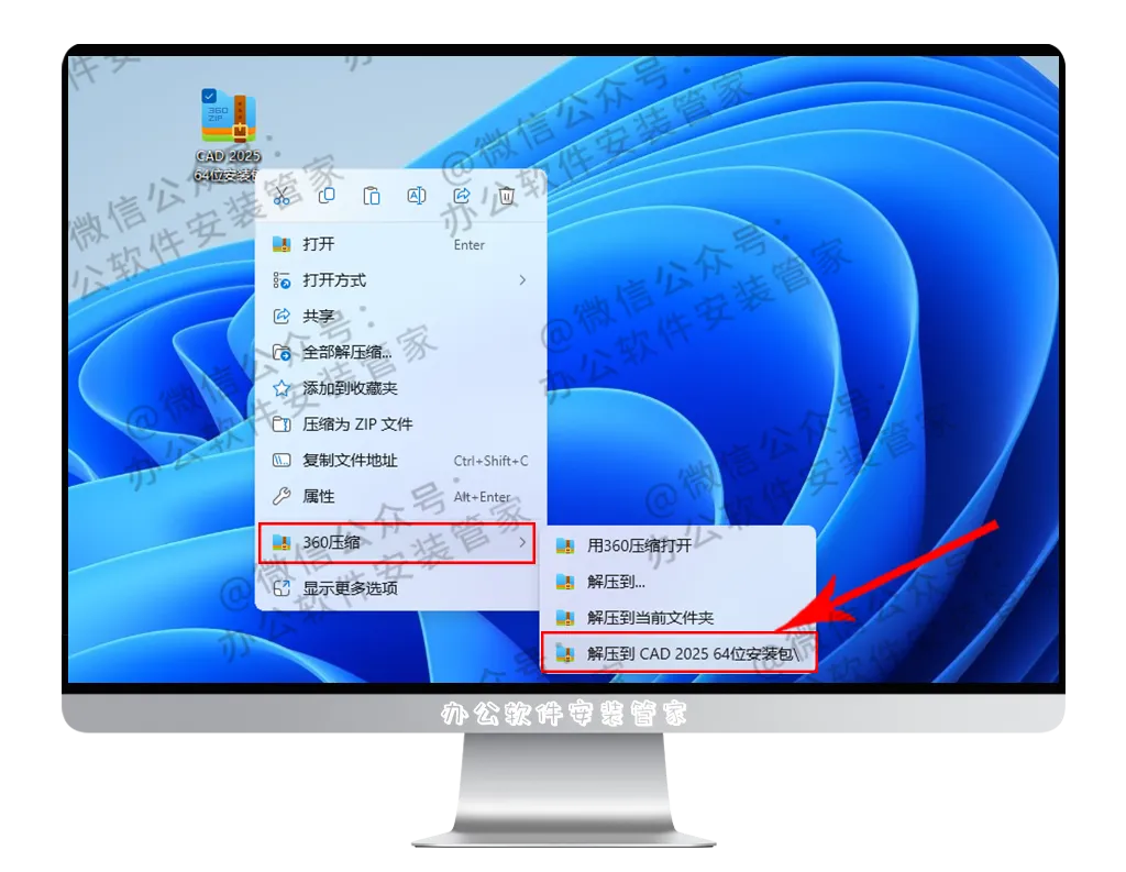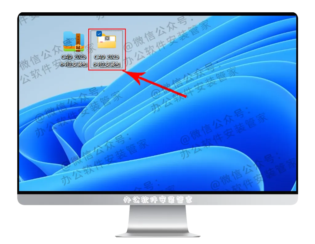 1.找到并选择已下载好的 【CAD 2025 64位安装包】 压缩包并进行解压操作