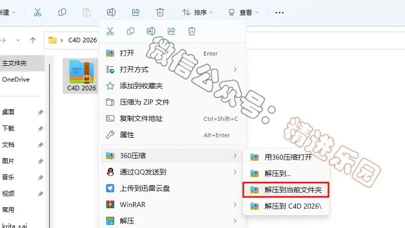 1、下载C4D 2026软件安装包到电脑上,右键选择【解压到当前文件夹】2、找到【Cinema4D_2026】应用程序,右键选择【以管理员身份运行】它4、软件默认安装在C盘,可自定义更改软件安装位置,这里小编选择安装在D盘;点击【前进】9、回到C4D 2026文件夹,找到【Crack】文件夹,右键【打开】它12、回到桌面,点击任务栏的【开始菜单】,在【所有应用】中找到【Maxon Cinema 4D 2026软件图标】,将软件图标拖到桌面上,完成软件桌面快捷方式的创建。13、回到桌面,右键桌面上的【C4D 2026软件图标】,点击【打开文件所在位置】15、回到桌面,右键桌面上的【C4D 2026软件图标】,点击【打开】19、以上就是Cinema 4D 2026软件安装的全过程,要是对你有帮助的话,请为小编点个赞!