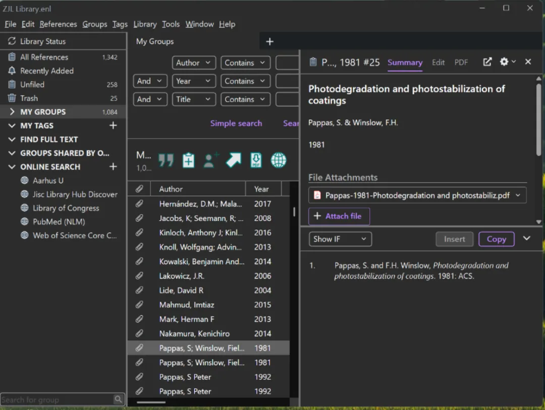| EndNote是一款由Clarivate Analytics(科睿唯安)公司发行的参考文献管理软件,广泛应用于学术研究和论文写作领域。其主要功能是帮助研究者高效地收集、组织、管理文献资料,并在撰写学术论文时自动格式化参考文献。 |