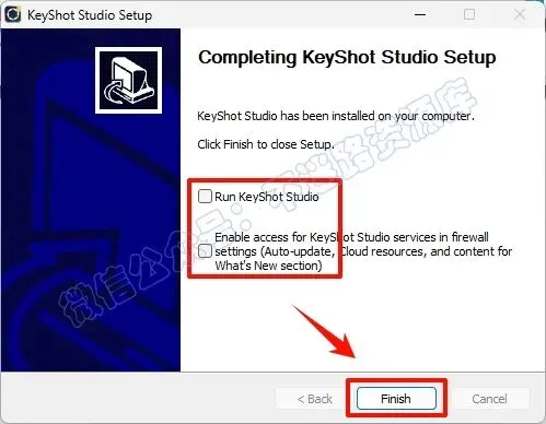 9.取消勾选下图所示的两个选项,点击”Finish“
