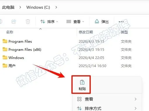11.打开桌面“此电脑”,打开C盘根目录,粘贴刚刚复制的文件