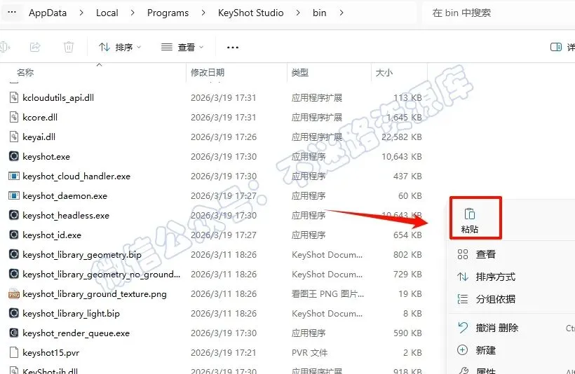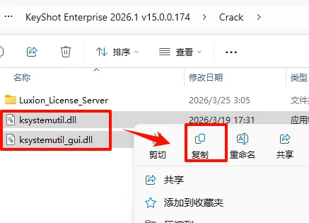 20.返回之前解压的“KeyShot Enterprise 2026.1 v15.0.0.174”文件夹,双击打开“Crack”文件夹,选中全部dll文件,鼠标右键点击“复制”