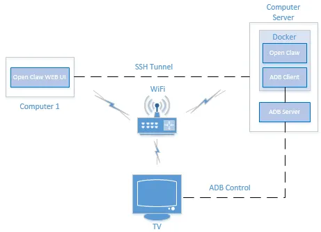 我最先尝试的是局域网直连控制——多数家电支持联网,无需额外设备,成本最低。乐视电视是安卓系统,天然支持ADB调试,成为我首个突破点。