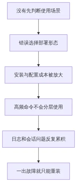 这篇我想做的,就是把最常见的三个痛点一次讲透:先帮你判断应该选哪种形态,再把高频命令压成最小闭环,最后给你一套出问题时的救援顺序。你不需要先背完整文档,先把这张速查图装进脑子里,实际落地时会轻松很多。