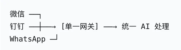 渠道碎片化:你在微信、钉钉、WhatsApp 里接入的 AI 助手,往往是各自独立的。每个渠道的体验不一致。