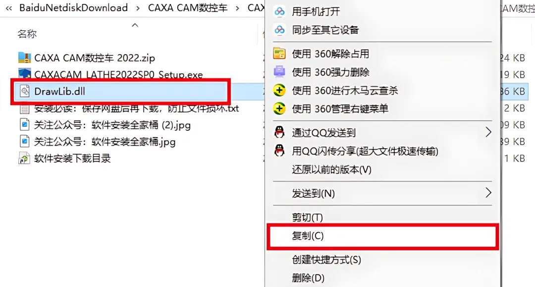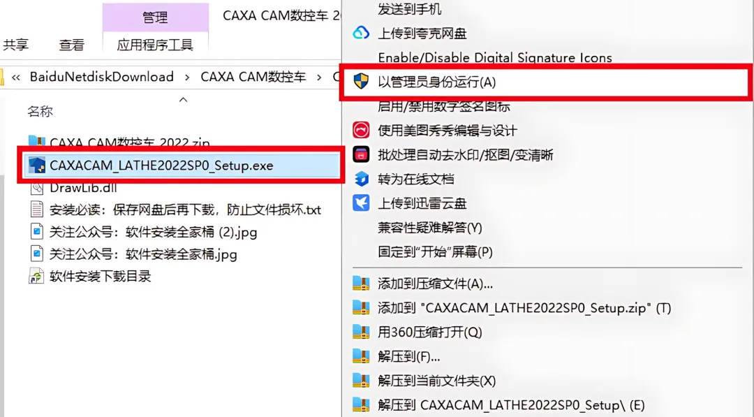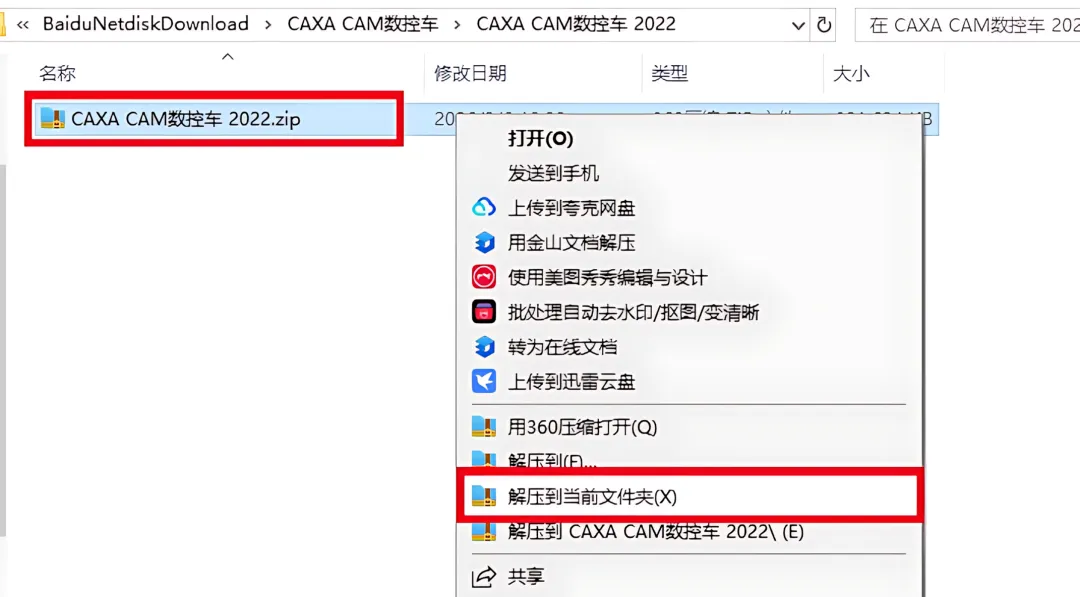 1.下载CAXA CAM数控车 2022软件安装包到电脑上,右键选择【解压到当前文件夹】。