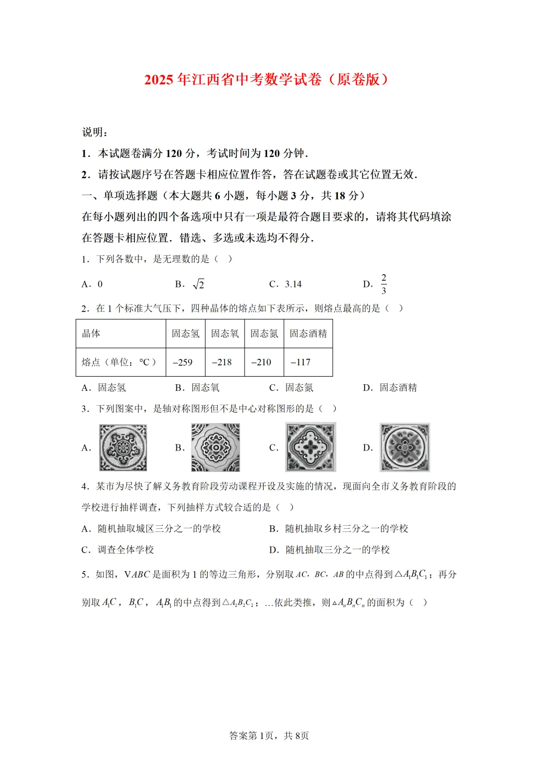 夜雨聆风 > > 办公文件 > 可下载:2025年中考数学【江西省卷】(含解析)