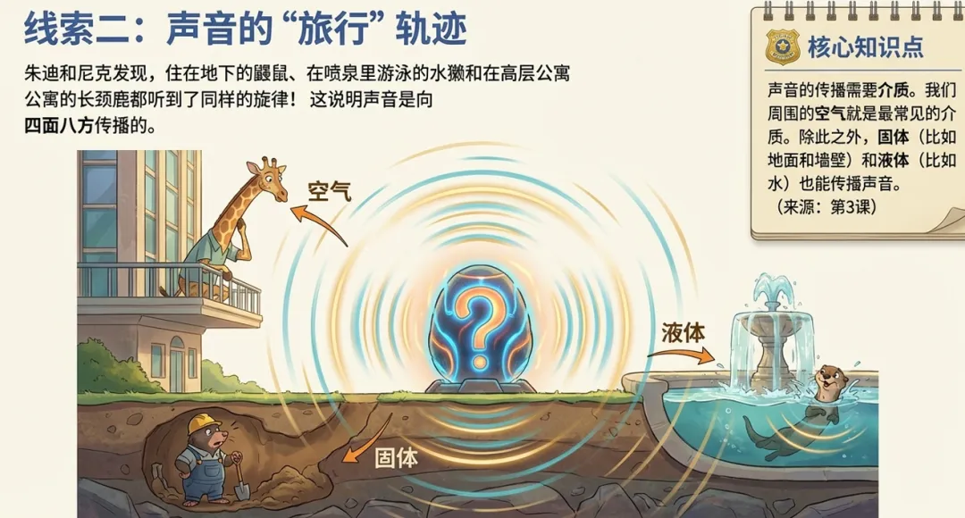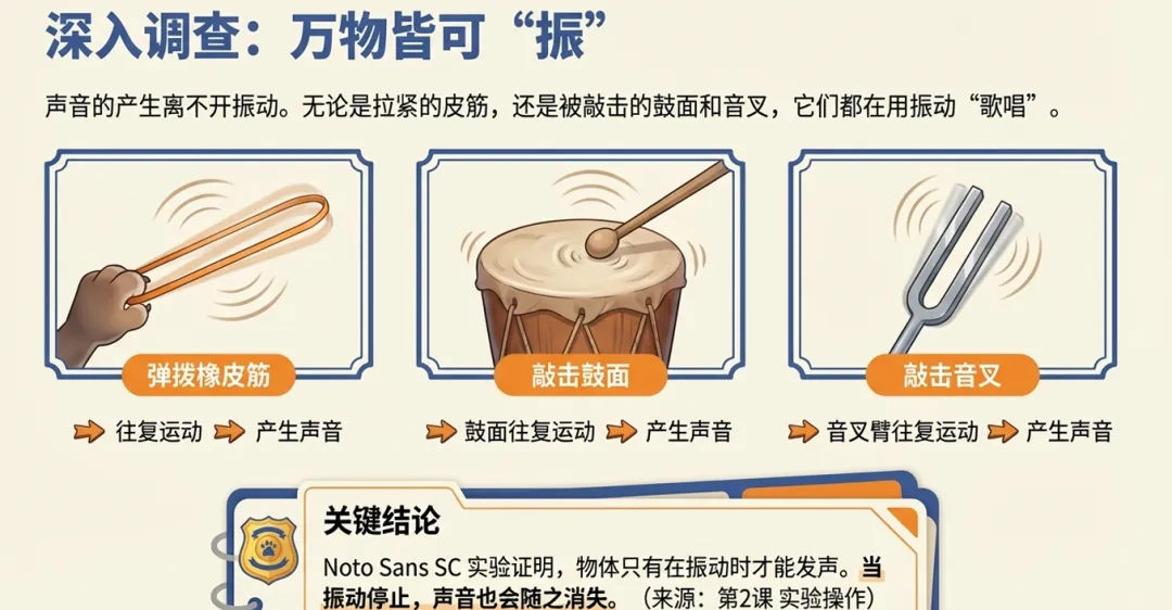 最后想说的是,我们科学课常担心学生觉得“原理枯燥”,但这份课件证明了:一个好故事加一套好视觉,能让声音的振动、频率、介质这些词变得有温度、有情节。学生学完会说“我记得那个豪猪的橡皮筋机器”,而不是“我背过声音由振动产生”。这大概就是我们想要的教学效果。
