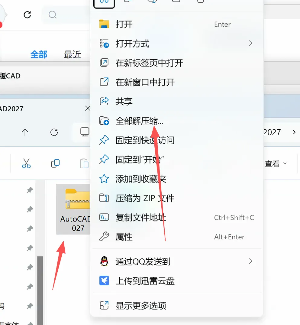 1、鼠标右键解压AutoCAD2027压缩包,可以用winrar/7z等免费解压工具去解压