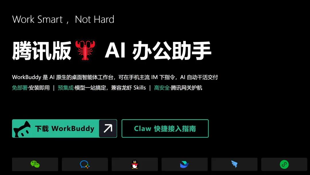 并且 WorkBuddy 对接渠道很多除了腾讯系的还可以很方便的对接飞书和钉钉,可以通过各种 IM 软件给 WorkBuddy 下发任务指令。