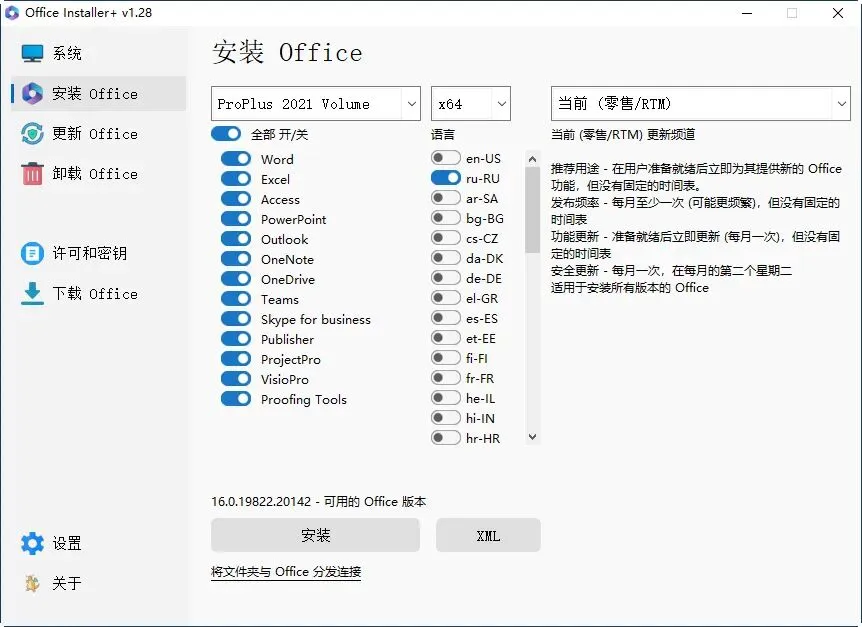 它本质上是一款Office配置工具,核心作用就是安装Office,除此之外还整合了更新、卸载、激活等常用功能,用起来特别省心,不用额外找其他工具。