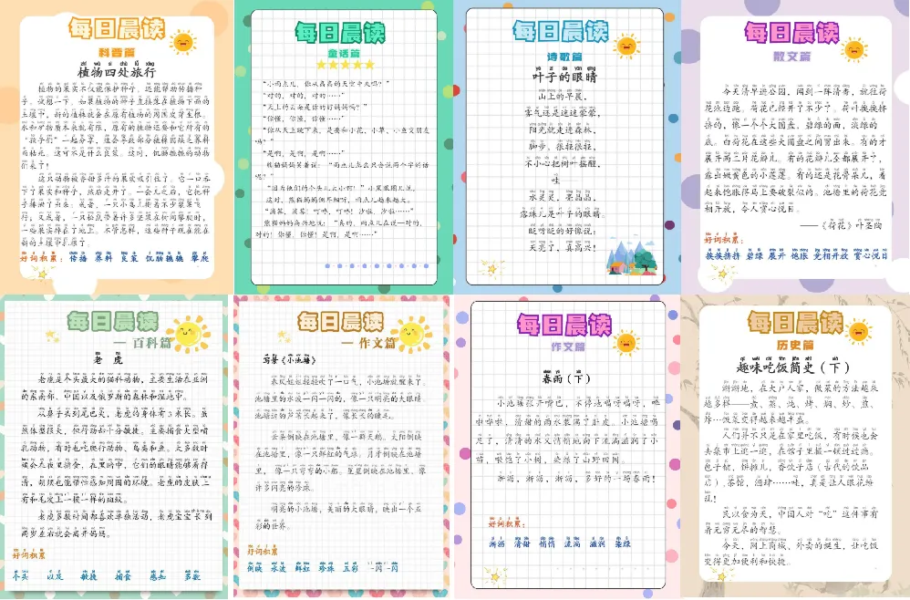 今天给大家整理了小学《每日晨读》资料汇总+337背诵打卡表,如需电子打印版请拉至文末获取领取方式。