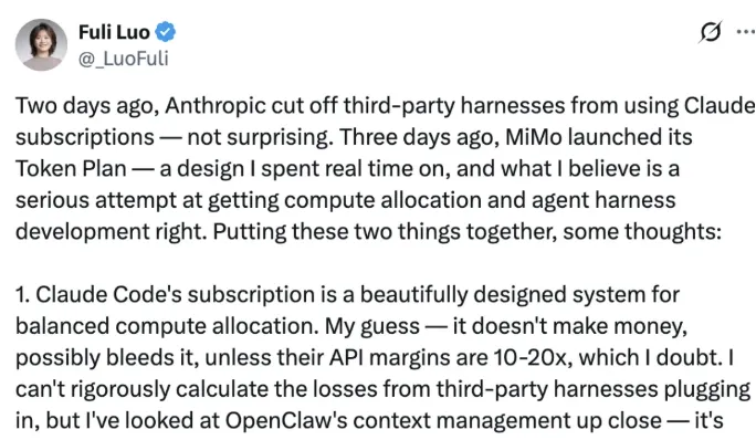 我觉得吧,这事儿其实没那么复杂。罗福莉需要让用户知道,小米 AI 是有态度的,不是那种只会发公关稿的公司。而且她这是在明确告诉市场,我们做的是可持续的生意,不是割一波就跑的那种。
