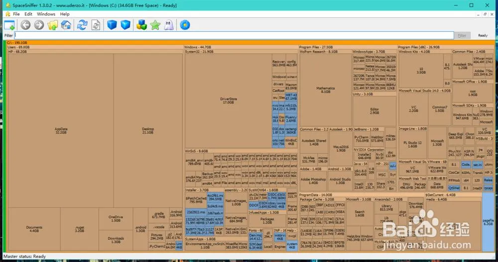 SpaceSniffer,一款能把你的磁盘空间"画"出来的免费工具。它不像传统文件管理器那样给你列一堆文件夹名,而是用彩色方块直观展示——方块越大,占用空间越多,3秒就能锁定"空间吸血鬼"!
