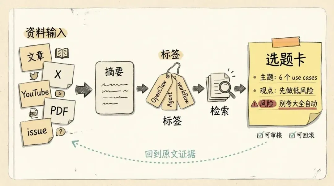 OpenClaw 很适合把这些事串成一条半自动 pipeline。