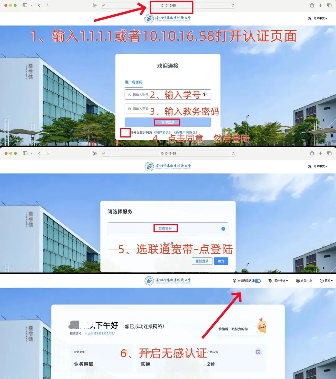 (如果没有弹出这个页面就在网址输入栏输入:10.10.16.58)