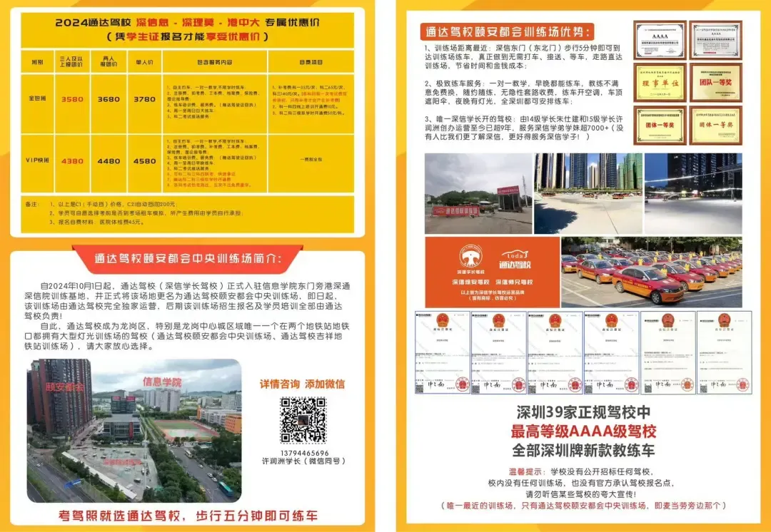 3、唯一深信学长开的驾校:(由14级学长朱仕建和15级学长许润洲创办)运营至今已超9年,服务深信学弟学妹超7000+(没有人比我们更了解深信,更好地服务深信学子!)