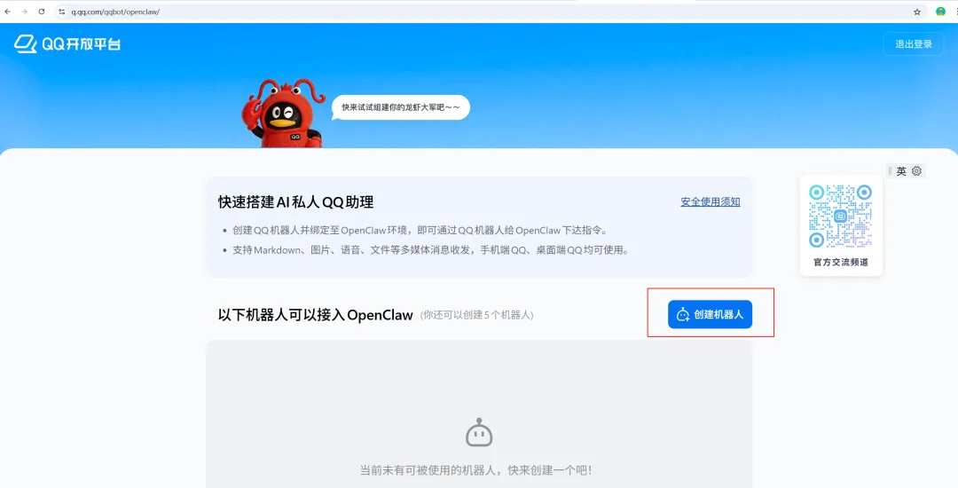 打开QQ开发平台(浏览器访问https://q.qq.com),用手机 QQ 扫码登录。