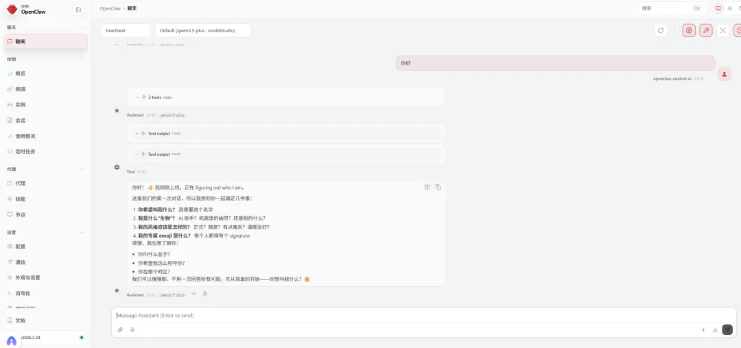 设置完成后,OpenClaw 正式拥有了“大脑”。