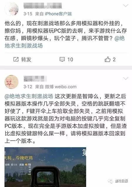 3月12日,《绝地求生:刺激战场》完成了一轮“新春特训”的版本更新。本来是一次意在回馈玩家的福利活动,却因为模拟器的问题,而引来了一场两派玩家的骂战。大致的争议点为,玩手机游戏究竟该不该用模拟器。
