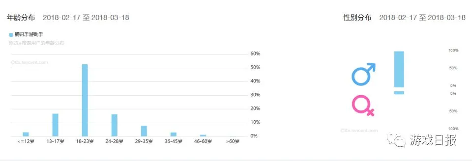 值得一提的是,根据腾讯浏览指数显示,虽然关键词“腾讯手游助手”与手游玩家的画像基本重合。但男女比方面,男玩家对于模拟器的需求量要远远高于女玩家,不知这是否可以看做是男女玩家对于游戏需求的一种侧面呈现。
