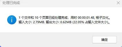 然后你会看到进度条欢快地跑起来,稍等片刻(取决于文件多少),所有工作就完成了。软件还会弹出一个详细的报告,告诉你每个文件缩小了多少,省了多少空间。