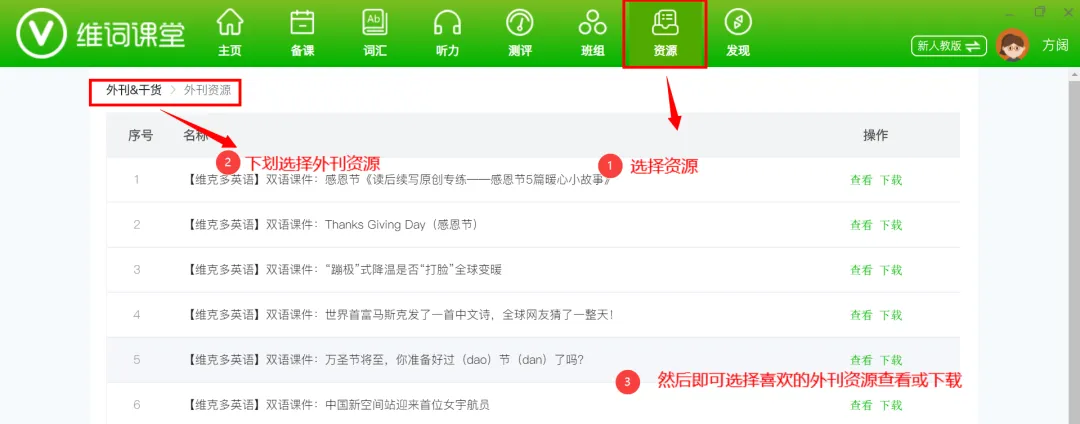 维词PC端主要可以实现的资源下载和教学辅助两大功能操作如下,如果感觉软件不错,欢迎将软件推荐给身边的老师哦!!