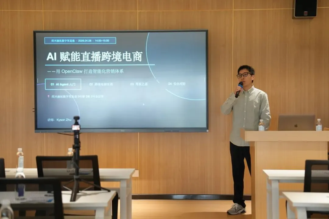 4月8日下午,一场以“AI赋能直播跨境电商——用OpenClaw打造智能化营销体系”为主题的专题活动在绍兴融杭数字贸易港3号楼3号会议室火热举行。本次活动汇聚了众多跨境电商从业者、直播电商运营者及AI技术爱好者,共同探索人工智能技术驱动下电商营销的创新路径。