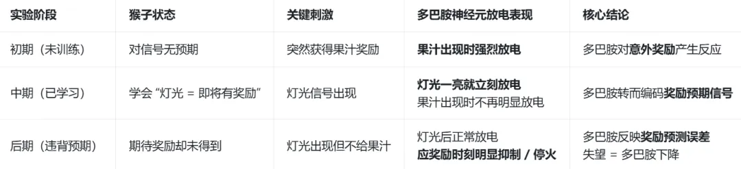 后来,舒尔茨的猴子实验证明了愉悦不是由多巴胺产生的,而是奖励预期误差信号,换言之,你在草丛蹲守,提前放好技能,你预测敌方会出现在这里,你成功实现一杀,这时候,多巴胺起到作用,让你产生爽感,这种爽感不是敌人死了的刺激,而是你成功预判了敌人。