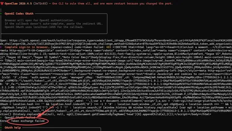 现象: 单独使用 命令行 登陆使用 Codex 没有问题,Opencalw 集成认证时跳转的网页也是认证成果的,但是最后回调时Openclaw确显示认证失败,无法集成