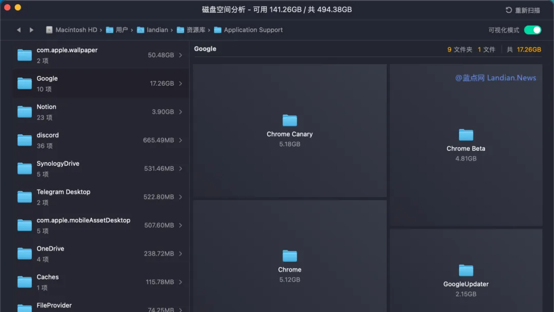 蓝点网在检查磁盘空间占用时发现每个谷歌浏览器都占用大约 5GB 的磁盘空间,蓝点网基于测试目的安装谷歌浏览器稳定版、开发版和金丝雀版,也就是这些版本合计占用约 15GB 的磁盘空间。