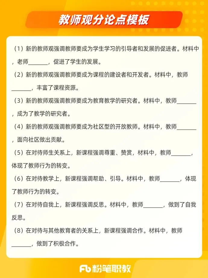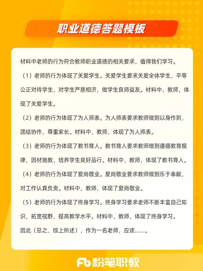 材料分析题第一题考查职业理念。题目会给出一个具体的教育教学情境,要求结合相关知识对教师的行为进行评析。具体出题角度有以下4个,考试会随机选取一个角度考查: