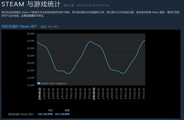 虽然在国内市场移动游戏仍是主流趋势。然而,随着Steam平台普及率的提升,PC端的市场盘子在随之扩大,据Steam官方统计的数据,Steam平台同时在线用户数量在今年4月突破了2400万人。