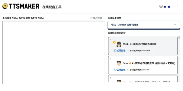 合成音频可直接商用,无版权纠纷TTSMaker(马克配音)。 - 长文本友好