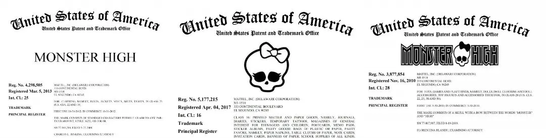 严禁在Listing中使用“Barbie”、“MONSTER HIGH”等词汇,甚至类似拼写或颜色描述(如“芭比粉”)也可能构成侵权。美泰持有超级多的美国商标、版权等,建立完整的知识产权护城河。
