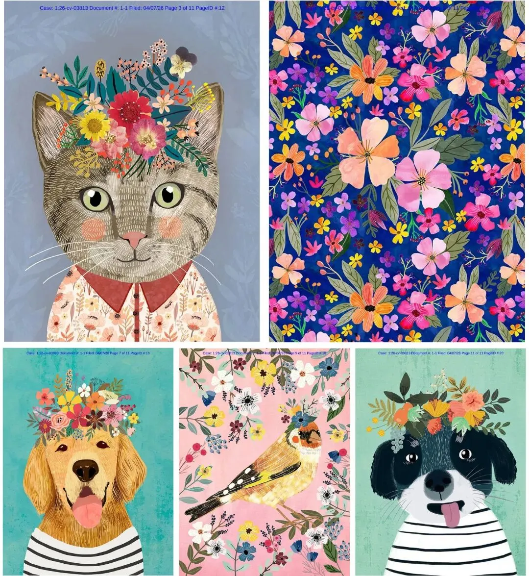 卖家需要全面检查店铺内所有商品,特别是文具、织物、拼图、手机壳等品类,严格排查是否存在未经授权使用其花卉、动物、大自然插画风格的作品。