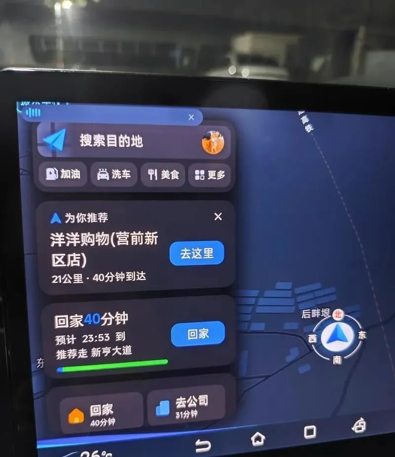 手车互联这块也优化得很丝滑。只要你家和车连的是同一个WiFi,或者手机开了热点,手机上的高德路线规划,一上车就自动流转到车机上了,收藏的地点、常用的设置也都跟着同步过来,不用再在车机那个不好用的输入法上戳半天了。
