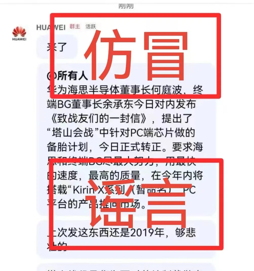 华为“塔山会战”PC端芯片备胎计划转正?知情人士回应!2024.05.09本文字数:1114,阅读时长大约2分钟作者 | 第一财经 李娜5月9日早间,针对网传“塔山会战”PC处理器备胎计划今日转正的消息,华为知情人士对第一财经记者表示,该消息为假消息。8日晚间,一张涉及华为的图片在网上流传,该图片显示,华为海思半导体董事长何庭波与终端BG董事长余承东对内发布《致战友们的一封信》,提出了“塔山会战”中针对PC端芯片做的备胎计划,正式转正。并要求海思和终端BG尽最大努力,用最快的速度,最高的质量,在今年内将搭载“Kirin X系列(暂命名)”PC平台的产品推向市场。但上述知情人士表示,《致战友们的一封信》为假消息。“这几年,华为受住了严峻考验,经营逐步回归常态,旗舰产品按节奏推出,不太可能以类似方式进行内部动员。”该人士称。5月7日,据媒体报道,美国政府已吊销英特尔、高通等公司向华为的出口许可证。美国商务部证实,已吊销一批许可证,但未明确指出是哪些公司。此前,英特尔与高通分别是华为笔记本电脑和手机的芯片供应商。在2019年华为受美国制裁后,它们曾获得了特别授权,允许向华为销售芯片。高通方面,在过去三年为华为提供手机主处理器芯片。有消息称高通与华为的专利协议将于2025财年到期,已开始进行续签谈判。但高通内部人士8日早间对第一财经记者表示,相关协议在今年11月份到期,目前看已经没有续约的可能性。“手机芯片去年还在陆续下单,但量已经不多,其他业务比如物联网、XR相关合作还在进行,但现在看会受到较大影响。”高通官方则未对上述消息作出回应。相较于高通的手机芯片,英特的PC芯片与华为合作更为紧密。近期,华为发布的MateBook X Pro笔记本电脑还使用了英特尔的酷睿Ultra 9处理器芯片。市场分析机构Canalys数据显示,在中国市场,华为笔记本电脑的销售额份额已从2018年的2.2%增长到2023年的9.7%,取代戴尔成为第三大笔记本电脑销售商。华为PC去年整体出货量为398.6万台,同比增长11%,市场份额为10%,排名第三,是前五名中唯一实现增长的厂商。截至发稿,英特尔、华为方面并未对作出更多回应。5月8日,中国商务部新闻发言人在接受媒体采访时回应,美方泛化国家安全概念,将经贸问题政治化,滥用出口管制措施,针对特定中国企业一再采取无理制裁打压措施。中方对此坚决反对。商务部新闻发言人表示,美方限制纯民用消费芯片产品对华出口,对特定中国企业实施断供,这是典型的经济胁迫做法,不仅违背世贸组织规则,也严重损害美国企业利益。美方所作所为已严重违背“不寻求与华脱钩”“不阻碍中国发展”的承诺,更与其“精准界定国家安全”的说法背道而驰。商务部新闻发言人称,中方将采取一切必要措施,坚定维护中国企业的正当权益。微信编辑 | Ziang推荐阅读飞书,裁员!