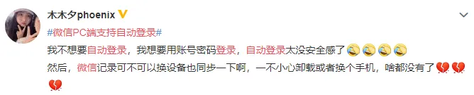微信 Windows 客户端增加了新功能,登录 PC端微信之后,在手机端上勾选“自动登录该设备”,下次登录微信就无需手机确认即可完成PC端的登录。