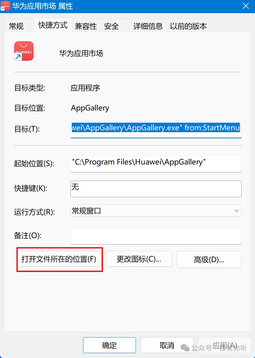 右键点击待卸载的软件图标,选择属性,在快捷方式页签下点击打开文件所在的位置。
