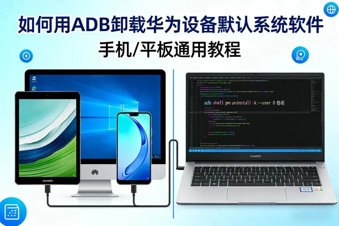 设备管理与连接adb devices 查看已连接的设备列表,是检查设备是否正常连接的首选命令。adb get-state 获取设备当前状态,如 device(正常)、offline(无响应)或 unknown(未连接)。adb get-serialno 获取设备的序列号(SN),用于在多设备时区分不同设备。adb reboot 重启设备。adb reboot recovery 重启设备并进入Recovery模式。adb reboot bootloader 重启设备并进入Bootloader模式(通常用于刷机)。adb start-server 启动ADB服务。如果执行ADB命令时提示“找不到设备”,可以尝试此命令。adb kill-server 停止ADB服务。当ADB工作异常时,可以先执行此命令再执行 adb start-server 来重启服务。应用管理adb install <APK路径> 安装应用,例如 adb install C:\app.apk。adb install -r <APK路径> 强制重新安装应用,并保留原有数据。adb uninstall <包名> 卸载应用,例如 adb uninstall com.example.app。adb shell pm list packages 列出设备上所有应用的包名,用于查找你需要卸载或操作的包名。adb shell pm clear <包名> 清除指定应用的数据和缓存。adb shell am force-stop <包名> 强制停止正在运行的应用。adb shell am start -n <包名>/<Activity名> 启动指定的Activity(应用的特定页面)文件操作adb push <电脑文件路径> <平板目标路径> 将文件从电脑复制到平板,例如 adb push D:\test.txt /sdcard/。adb pull <平板文件路径> <电脑目标路径> 将文件从平板复制到电脑,例如 adb pull /sdcard/screenshot.png D:\。adb shell ls 列出目录下的文件和文件夹,相当于Windows中的 dir 命令。adb shell rm <文件路径> 删除平板上的文件,例如 adb shell rm /sdcard/test.txt。日志查看与分析adb logcat 实时查看设备日志,是调试应用或分析系统问题的核心工具。adb logcat -c 清除日志缓冲区。adb bugreport 生成一份包含完整设备状态信息的详细报告,有助于分析复杂问题。adb shell dumpsys 转储系统服务信息,可以获取大量系统状态信息。屏幕操作adb shell screencap -p /sdcard/screen.png 截取屏幕,并将截图保存在平板的 /sdcard/ 目录下。adb exec-out screencap -p > sc.png 截取屏幕并将图片直接保存到电脑的当前目录,无需在平板保存中间文件。adb shell screenrecord /sdcard/demo.mp4 录制屏幕,视频会保存在平板的 /sdcard/ 目录下。系统信息查询adb shell getprop ro.build.version.release 获取Android系统版本。adb shell getprop ro.product.model 获取设备型号(例如你之前提到的 BAH-W09)。adb shell getprop ro.product.manufacturer 获取设备制造商(例如 HUAWEI)。adb shell wm size 获取屏幕分辨率。adb shell cat /proc/cpuinfo 查看CPU信息。adb shell cat /proc/meminfo 查看内存使用情况。其他实用命令adb help 显示所有ADB命令的帮助信息。adb version 查看当前ADB工具的版本号。adb backup -all -f backup.ab 备份平板数据,将数据保存为 backup.ab 文件。adb restore backup.ab 从备份文件恢复数据。adb forward tcp:6100 tcp:7100 设置端口转发,将电脑的6100端口转发到平板的7100端口。adb shell input keyevent KEYCODE_POWER 模拟按下电源键,用于唤醒屏幕或点亮屏幕。adb shell input text "Hello" 模拟输入文本,在输入框中输入“Hello”。adb shell input tap 500 1000 模拟点击屏幕坐标(x, y),坐标可通过开发者选项中的“指针位置”获取。