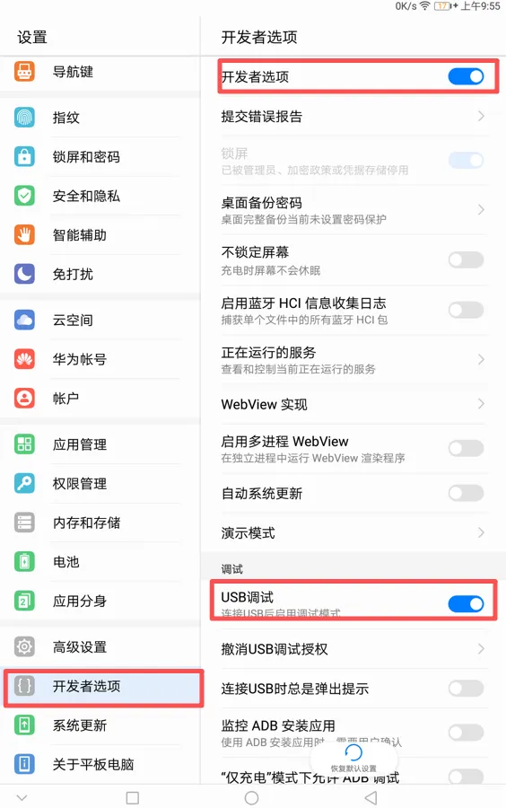 四、打开华为平板或者手机的开发者模式。