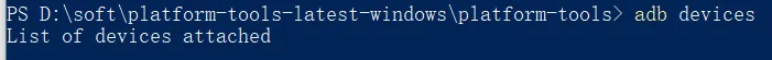 1、回到Windows PowerShell 窗口。adb devices,回车,如果出现device字样即表明已经连接成功。