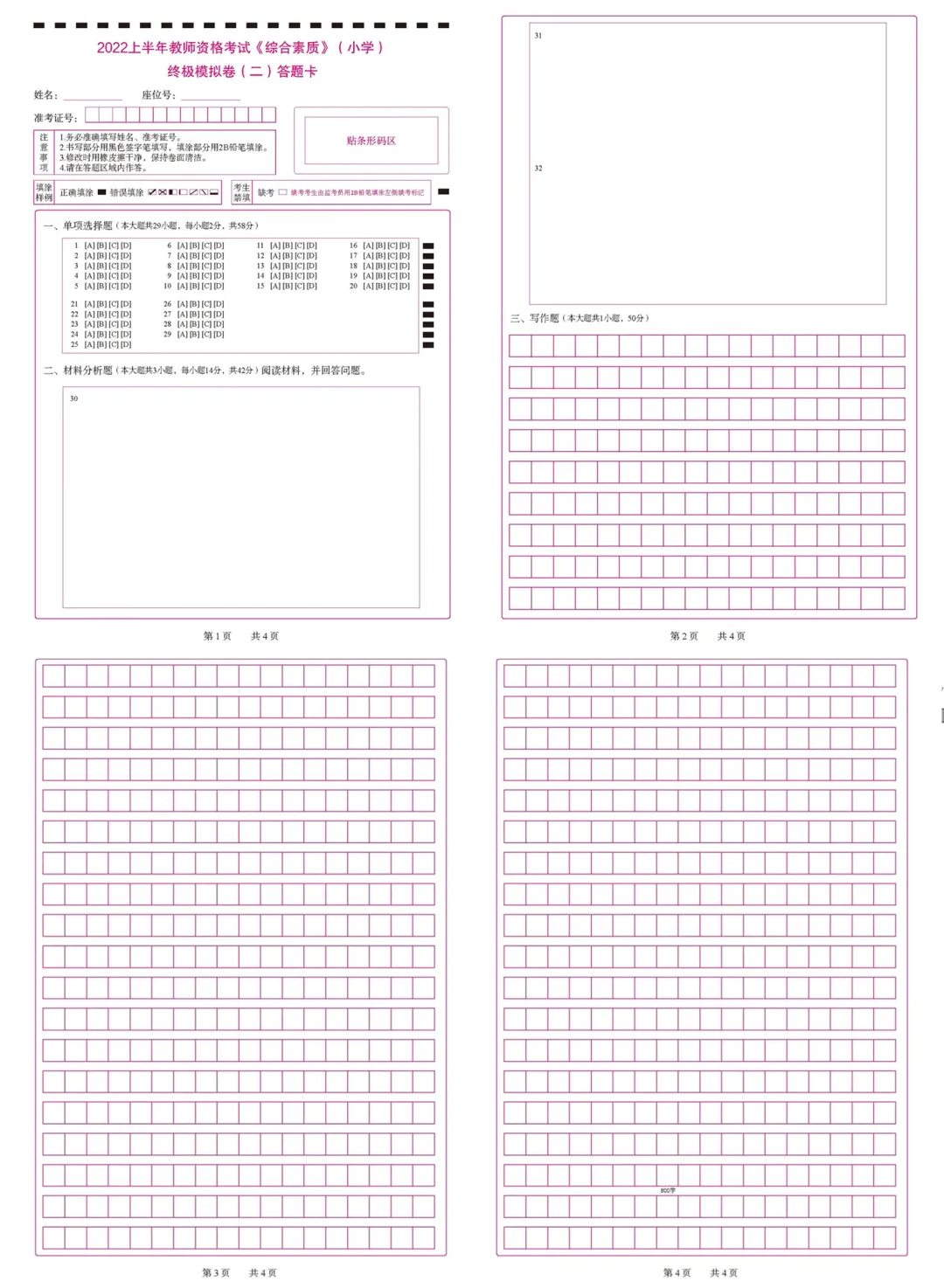 注意提前熟悉试卷,向下滑动查看↓