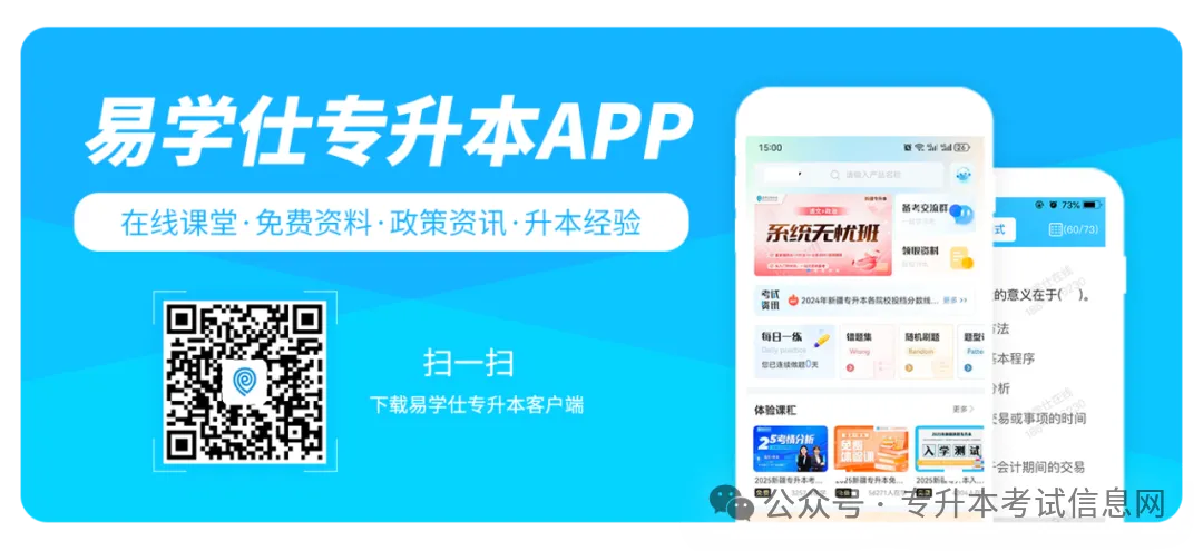 扫下方图片二维码下载易学仕专升本APP即可开始刷题。