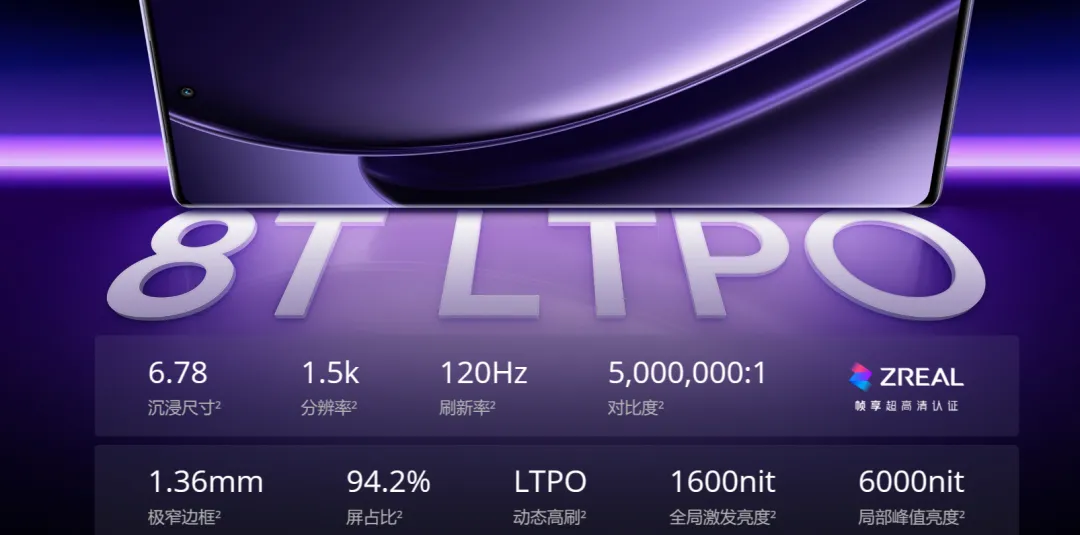 - 续航:5500mAh 电池,支持 120W 快充,10 分钟充电 50%,SUPERVOOC S 电源管理芯片;