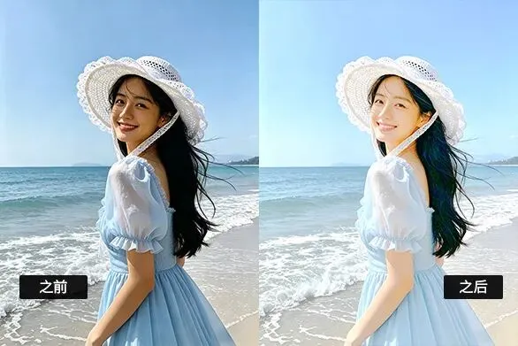 最后,查看一下处理前后照片的对比效果。