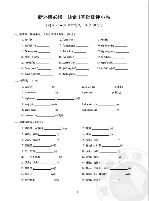 测评小卷:教学中重要的一个环节,学生在学习完新教材内容后,通过测评小卷查缺补漏,可以巩固词汇基础知识,夯实学生基础。